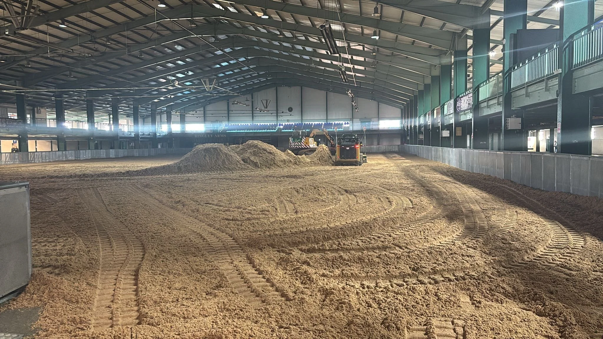 Our team supplied and laid 700 tons of waxed sand and fibre surface, creating the perfect footing for horses and handlers throughout the show. Just three days later, once the event had concluded, we returned to carefully remove the entire surface, ensuring the venue was left in excellent condition.